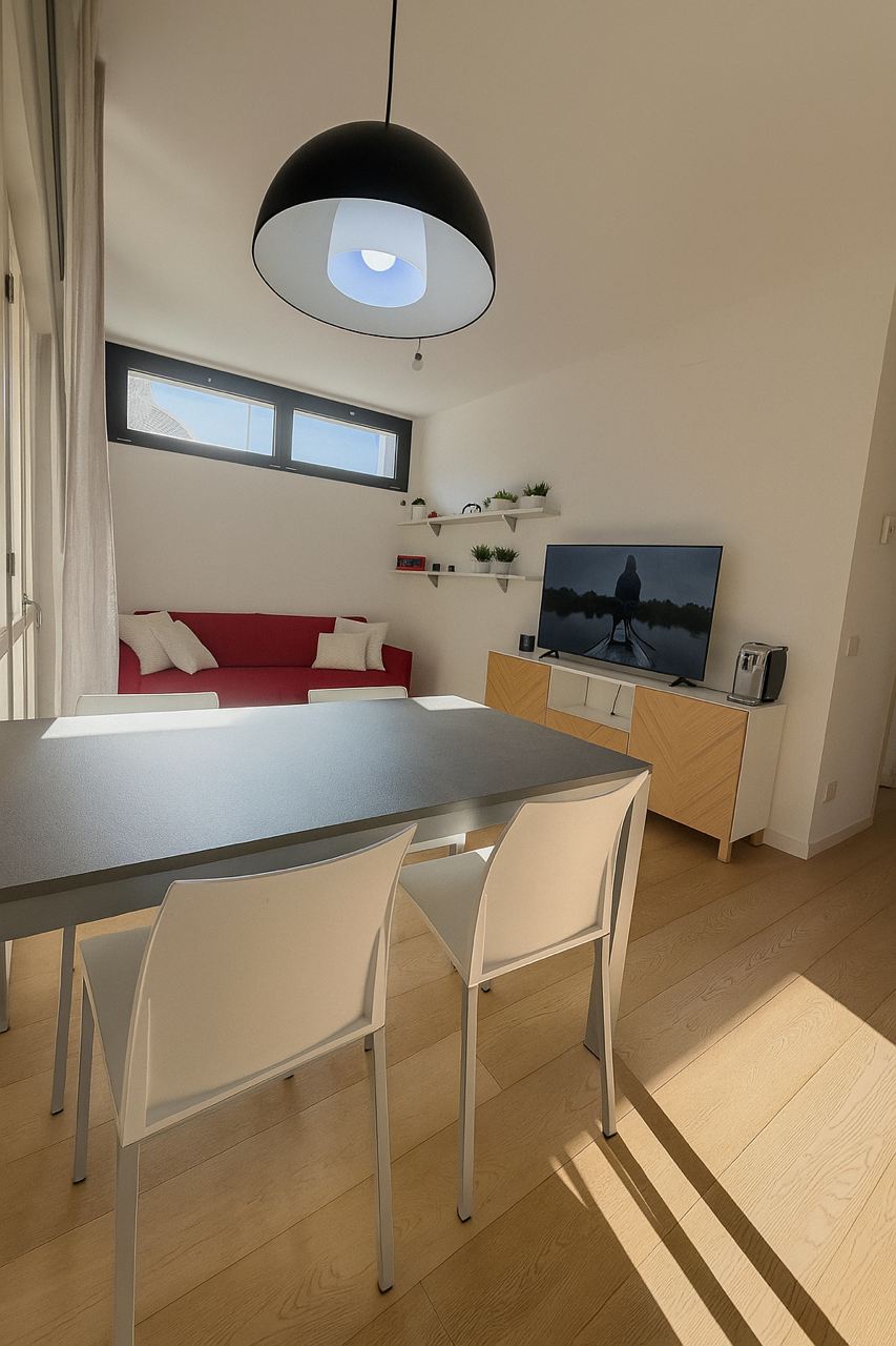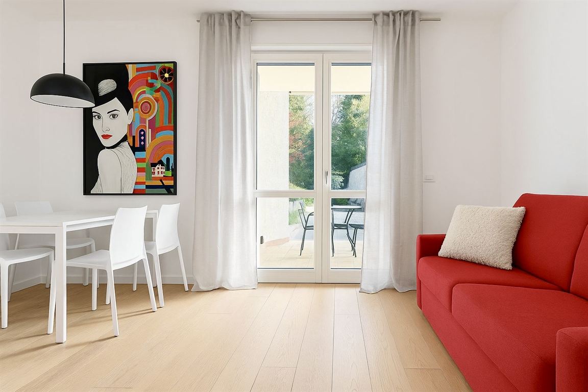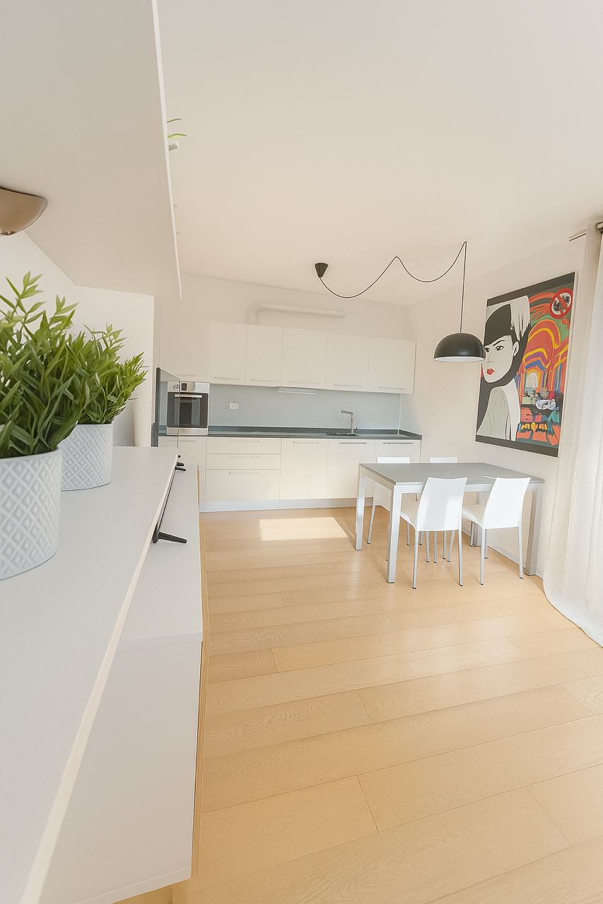 Proponiamo in vendita un raffinato appartamento di design, dove luce naturale, linee moderne e dettagli ricercati si fondono in un ambiente accogliente e funzionale. L’immobile si apre su una luminosa zona living con cucina a vista, perfettamente organizzata e impreziosita da ampie vetrate che donano profondità e continuità agli spazi, oltre a garantire accesso diretto al terrazzo vivibile, ideale per pranzi all’aperto o momenti di relax. La zona notte offre una spaziosa camera matrimoniale, affiancata da due bagni moderni, rifiniti con materiali di qualità. Possibilità di box auto € 17.000 e/o posto auto € 7.000