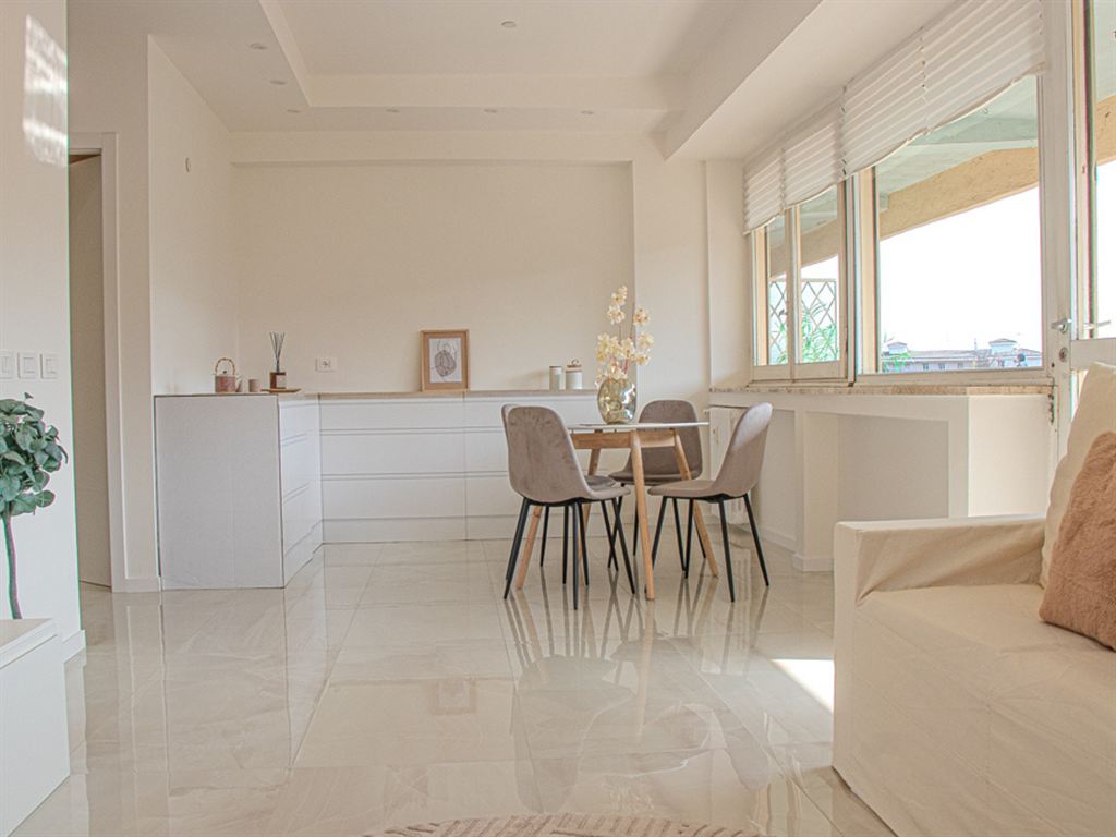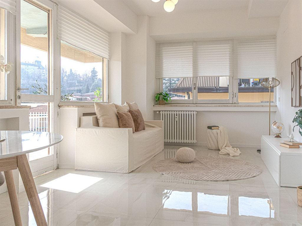 Nel cuore della Brunella, una delle zone più richieste e apprezzate di Varese, proponiamo in vendita un elegante appartamento completamente ristrutturato situato al quinto piano di una palazzina servita da ascensore e caratterizzata da uno stile architettonico particolarmente moderno per l’epoca di costruzione (anni 70). L'appartamento è costituito da un ampio soggiorno living open space con cucina a vista, uno spazio moderno e accogliente pensato per essere vissuto in modo conviviale. L’ambiente risulta particolarmente luminoso grazie alle ampie superfici finestrate presenti su due lati dell’abitazione che garantiscono una splendida illuminazione naturale durante tutta la giornata e valorizzano la vista aperta. Dal soggiorno si accede direttamente allo straordinario terrazzo di circa 45 mq, uno spazio esterno davvero raro da trovare in zona, ideale da arredare e vivere come una naturale estensione della zona giorno, perfetto per pranzi all’aperto o serate conviviali. La zona notte è composta da due camere da letto, oltre a due bagni, di cui uno dotato di doccia, e da un pratico ripostiglio utilizzabile anche come lavanderia, che rende gli spazi ancora più funzionali. L’immobile è stato oggetto di una ristrutturazione completa, che ha interessato sia la distribuzione degli ambienti sia il rinnovamento degli impianti. Sono stati infatti rifatti integralmente l’impianto idrico-sanitario e l’impianto elettrico, garantendo maggiore efficienza e sicurezza. Sono state inoltre sostituite tutte le tapparelle e installati i motori per l’automazione, rendendole quindi completamente elettriche, per una gestione più pratica e moderna della luce naturale. Sono in fase di consegna e installazione anche i nuovi serramenti in PVC basso emissivi, che miglioreranno ulteriormente l’isolamento termico e acustico dell’abitazione, oltre alla nuova porta blindata. A completare il comfort dell’immobile verrà installato impianto di climatizzazione trial split in classe energetica A+. La palazzina è stata inoltre recentemente interessata da interventi di riqualificazione delle parti comuni, tra cui la verniciatura di cancelli e ringhiere dei balconi. Possibilità box a parte Euro 17.000,00 Perché scegliere questo appartamento: • posizione tra le più richieste della città, nel quartiere Brunella • appartamento completamente ristrutturato • straordinaria luminosità grazie alle aperture su due lati • grande terrazzo panoramico di 45 mq, introvabile • palazzina con architettura moderna Se stai cercando un appartamento luminoso, ristrutturato e con un grande terrazzo da vivere, questa soluzione rappresenta un’opportunità davvero rara nel mercato della Brunella. Contattaci per maggiori informazioni o per fissare una visita.